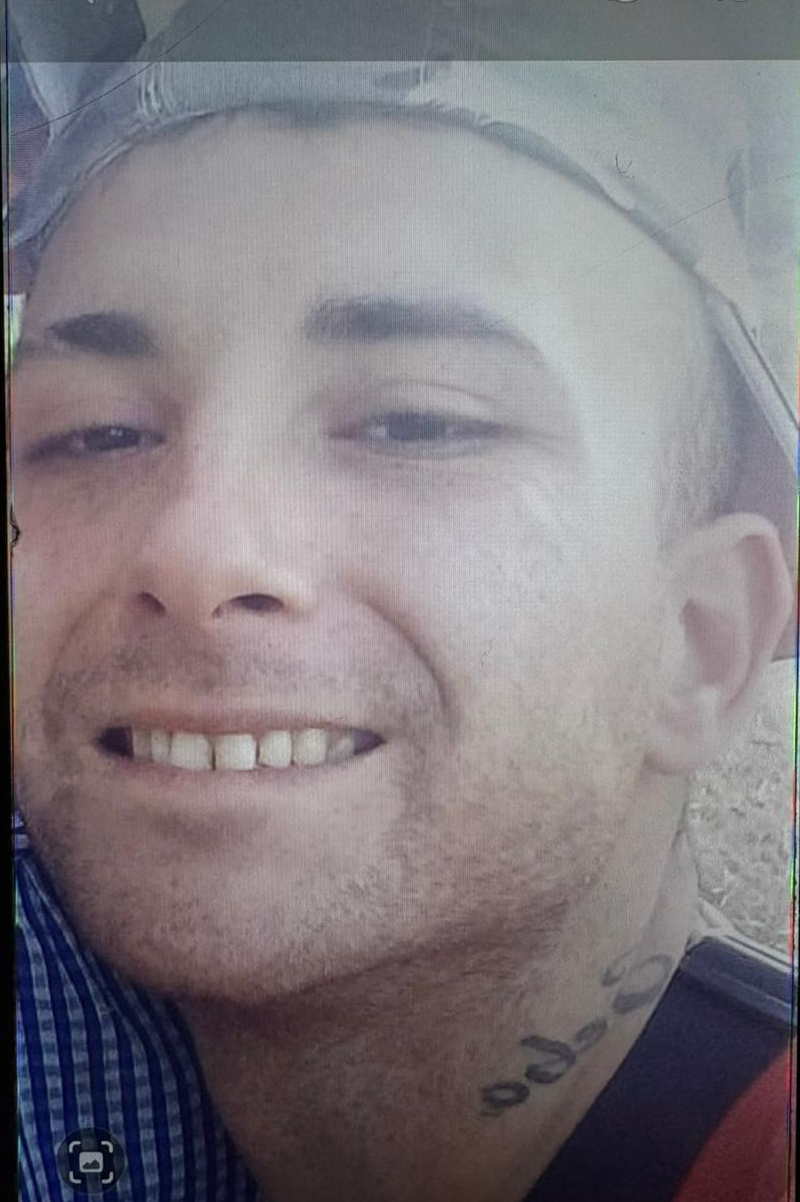 Tatuaje en el cuello con el nombre “Seba” VESTIMENTA: Canguro Gris con capucha, Jeans celeste, Calzado negro, gorro visera estilo camuflado.