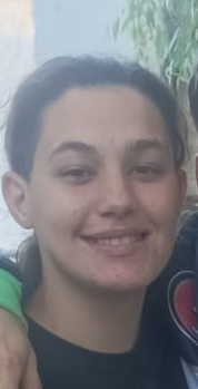 VESTIMENTA: PANTALÓN DE JEAN, REMERA COLOR NEGRA, CAMPERA NEGRA Y CHAMPIONES NEGROS CON ROSADO.