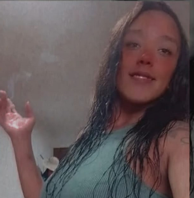 Tiene 3 tatuajes en la pierna con frases, uno en el brazo y una rosa en el hombro izquierdo. Viste de Short de Jean, Body negro y campera de Jean.