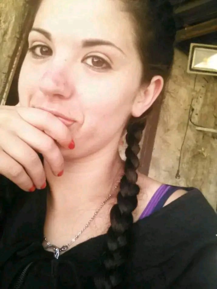 Tatuaje de rosa en pierna izquierda, cicatriz en mentón, cicatriz de cesárea. Vestimenta: buzo negro, short negro, championes negros, valija color verde oscuro , bolso de mimbre con colores, bolso chico oscuro, caravanas con pluma.