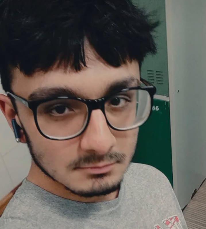 Usa Lentes de receta y tiene bigote. Vestía Remera color gris, bermuda color negro y mochila color verde oliva